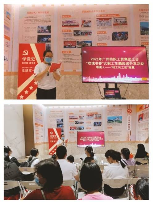 主题二“弘扬工匠精神”:广州轻工集团十大最美工匠之一、利工民陈慧技师创新工作室的陈慧作为“玫瑰书香”女职工主题阅读活动的领读人,为大家领读了《把一切献给党》选段,同时分享了自己对利工民产品20年的改良创新历程。利工民党委副书记、工会主席陈惠琼挥毫书写“巾帼共奋进,永远跟党走”。