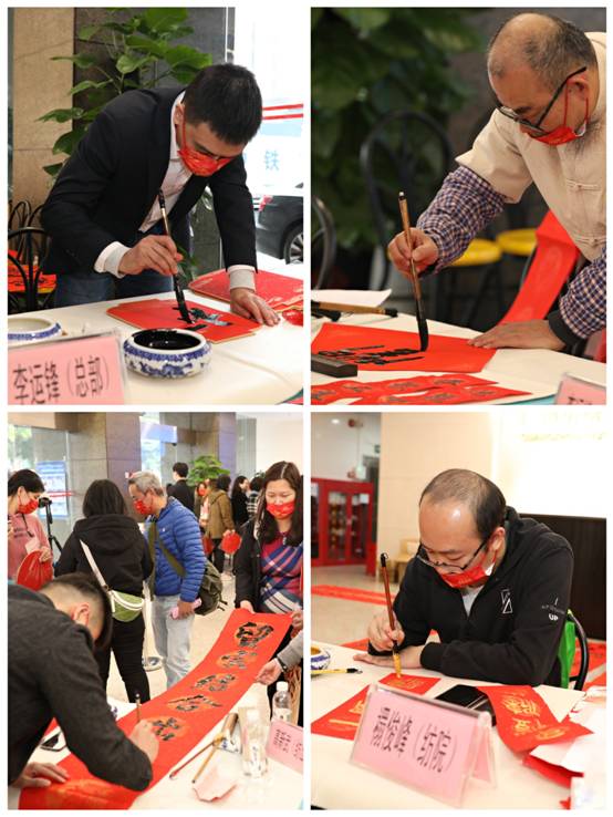 现场聆听广大员工粉丝心声,圆大家一个个微心愿,邱建和(退休领导)、高新武(纺出公司)、禤俊峰(纺织服装学院)、李运锋(总部)等福手们再次应邀现场挥墨为员工送福。笔耕4个多小时不停歇,现场创作超400幅,受到广大职工纷纷赞赏。