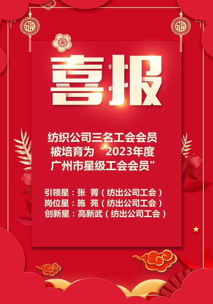 喜报:开云(中国)Kaiyun·官方网站三名工会会员被培育为“2023年度星级工会会员”