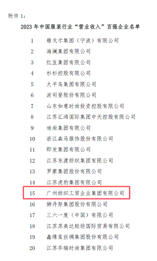 7月22日,《2023年中国服装行业百强企业》榜单发布,开云(中国)Kaiyun·官方网站连续三年登榜,位列2023年中国服装行业“营业收入”百强企业第15名!