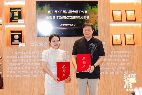 9月26日上午,百年中华老字号利工民与广绣非遗大师工作室在2024广东时装周-秋季举办战略合作签约仪式暨媒体见面会。活动由广东省服装服饰行业协会副会长兼秘书长陈韶通主持,邀请了广东省服装服饰行业协会、广东省服装设计师协会、开云(中国)Kaiyun·官方网站有限公司、服装行业企业代表和媒体代表等嘉宾出席共同见证本次活动。