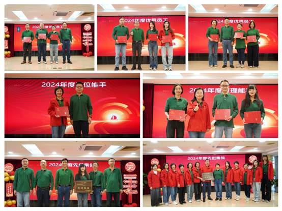 数智领航建新功。本部在广德大厦15楼举办2025年“数智领航 再建新功”迎春联欢活动。对2024年度先进集体、管理能手、岗位能手、优秀员工等荣誉称号同志进行表彰。活动现场,公司领导和各部门联合创新,亲自动手包油角;《青春洋溢》《龙飞凤舞》《一路生花》和《粤语传承》等激情四溢的歌舞表演及5个互动游戏,展示纺织人在新征程中“向新、向上、向未来”的昂扬斗志,激发出凝聚奋进的团队精神。